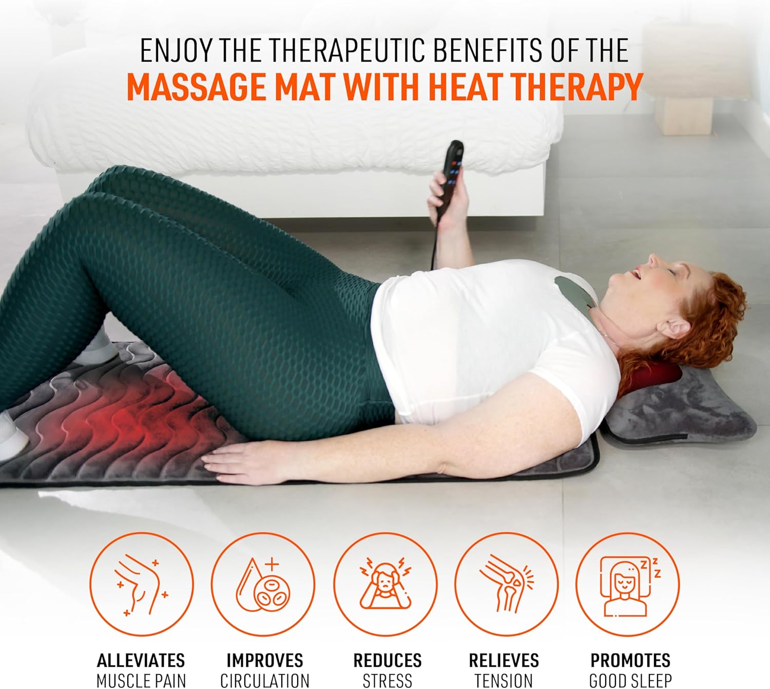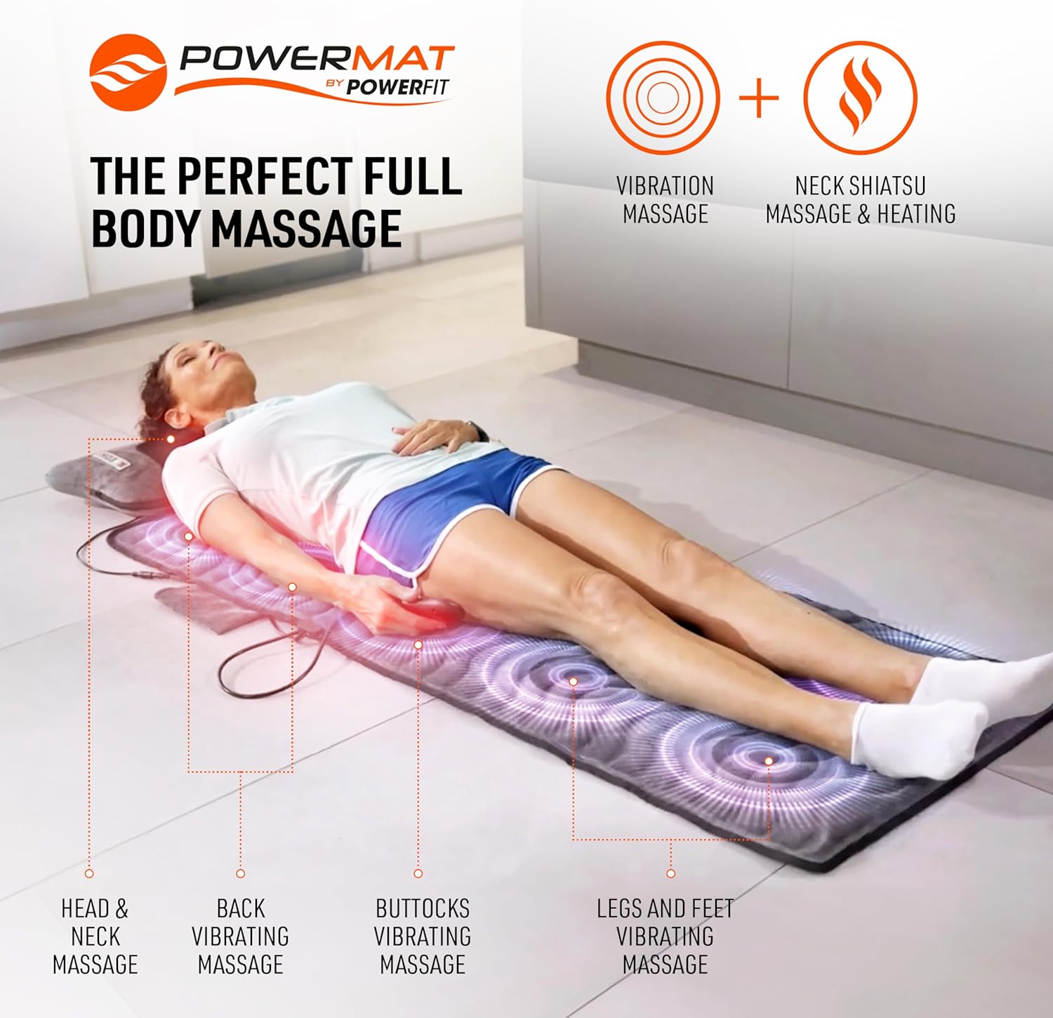 and Pain Relief.Having PowerMat would help reducing stress and tension with its combination of vibration, heat, and shiatsu massage, helping you feel more relaxed and improving your overall mood.